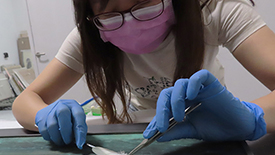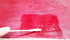 藝術品修復方法:媒材溶解度測試。