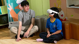 「科技×藝術」衛武營管風琴的解密之旅,讓學童實際體驗VR設備。