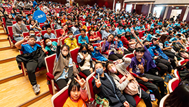 玉山文教基金會輕鬆自在場《冬日舞步》聖誕音樂會,邀請新北市八里國小、屯山國小及二橋國小共235位玉山圖書館學校師生走進劇場,在舒適無壓力的氛圍中感受表演藝術的魅力。