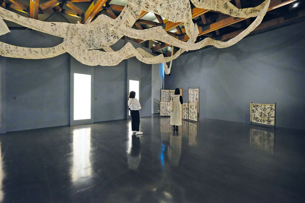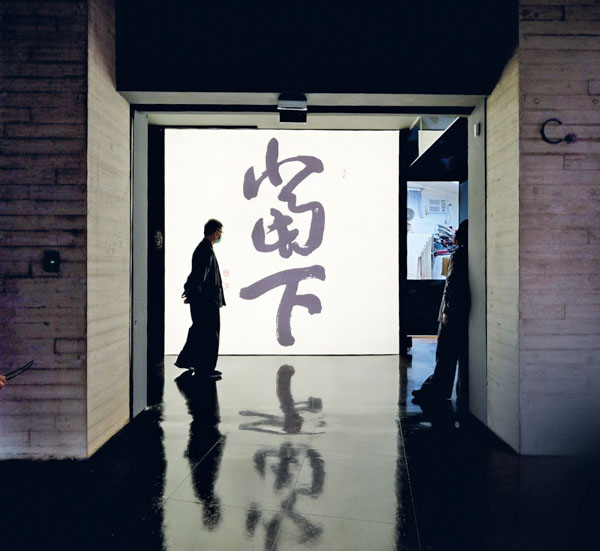 「當下.疊韻」展區,以絹布與燈箱創作書法如山水畫的藝術感。